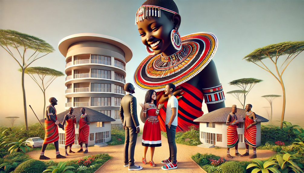 Step into a breathtaking Afro-Futurist world where culture, symbolism, and storytelling merge into a single surreal masterpiece. This artwork features a towering Maasai woman—radiant, powerful, and adorned in traditional beadwork—overlooking a lively village scene. Every detail is rendered with cinematic precision: expressive characters, modern circular architecture, warm savanna lighting, and vibrant tribal textiles.