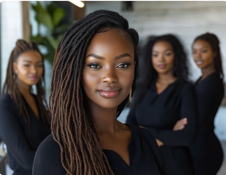 Step into the presence of elegance and authority. This portrait captures a powerful Black woman standing confidently at the forefront, surrounded by her equally poised counterparts — a visual story of leadership, unity, and unshakeable strength. Every detail, from the soft depth-of-field to the intentional composition, expresses resilience, ambition, and quiet confidence.